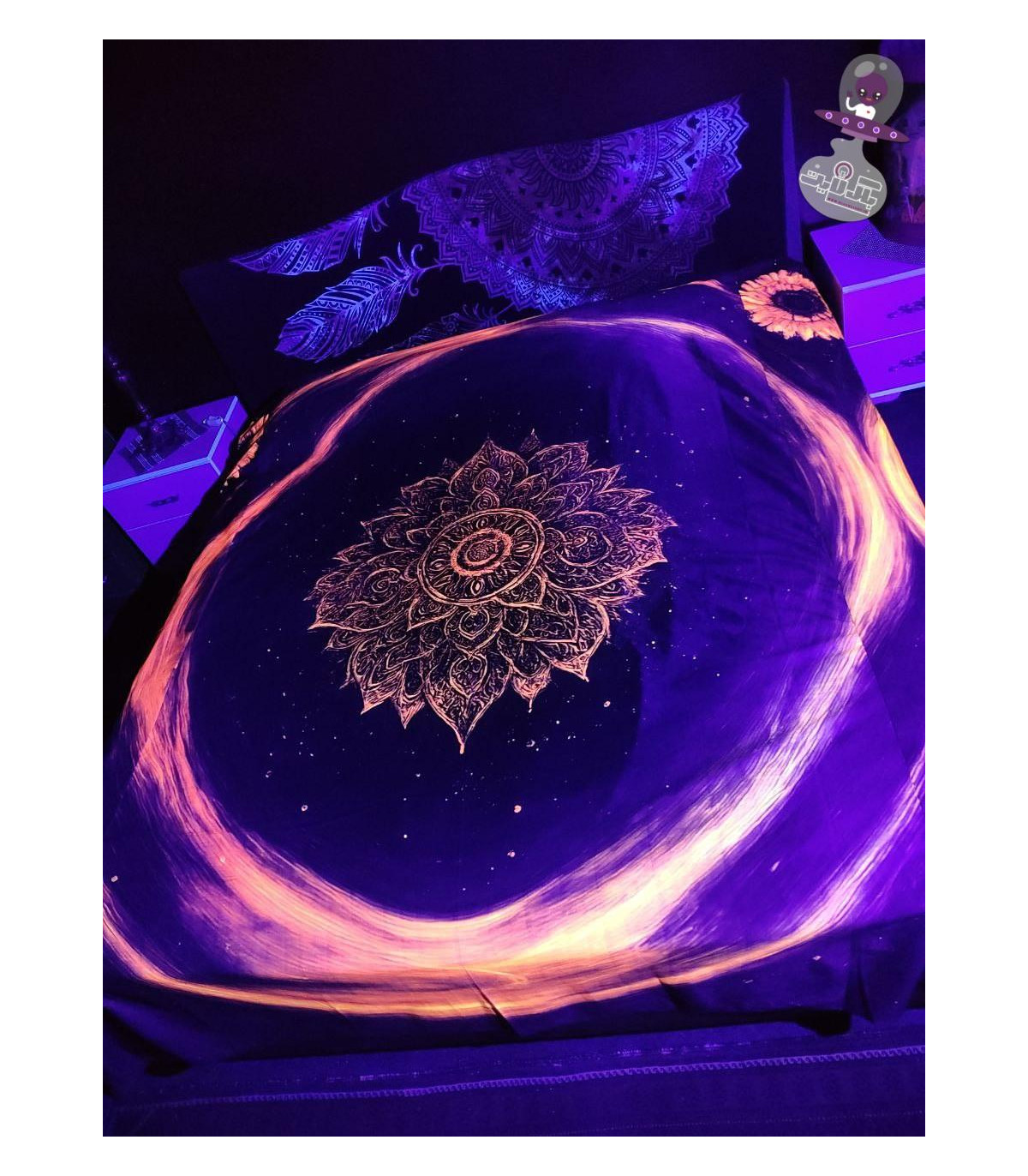 روتختی دونفره بلک لایت با استفاده از پارچهی مخمل باکیفیت و مقاوم، زیبایی خاصی به اتاق خواب شما میبخشد.